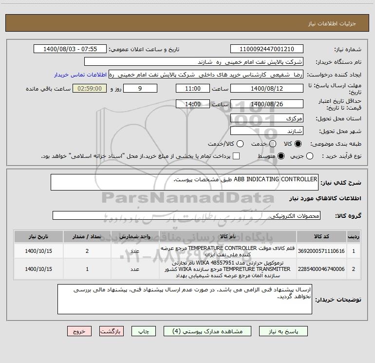 شرح کلی نیاز: ABB INDICATING CONTROLLER طبق مشخصات پیوست.