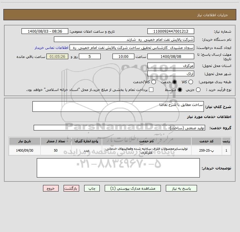 شرح کلی نیاز: ساخت مطابق با شرح تقاضا