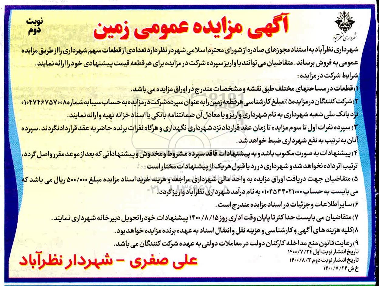 مزایده فروش تعدادی از قطعات سهم شهرداری نوبت دوم , مزایده مزایده فروش تعدادی از قطعات سهم شهرداری نوبت دوم
