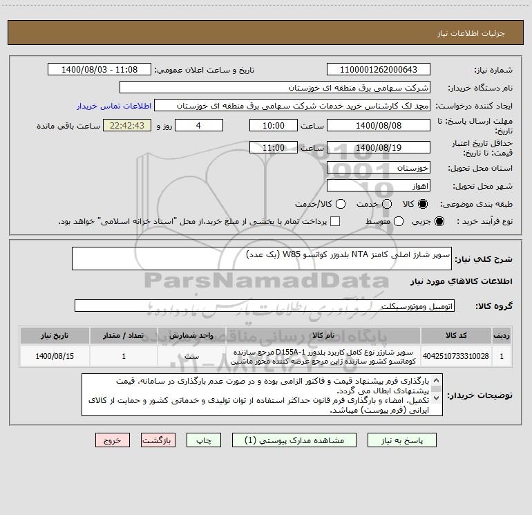 شرح کلی نیاز: سوپر شارژ اصلی کامنز NTA بلدوزر کواتسو W85 (یک عدد)