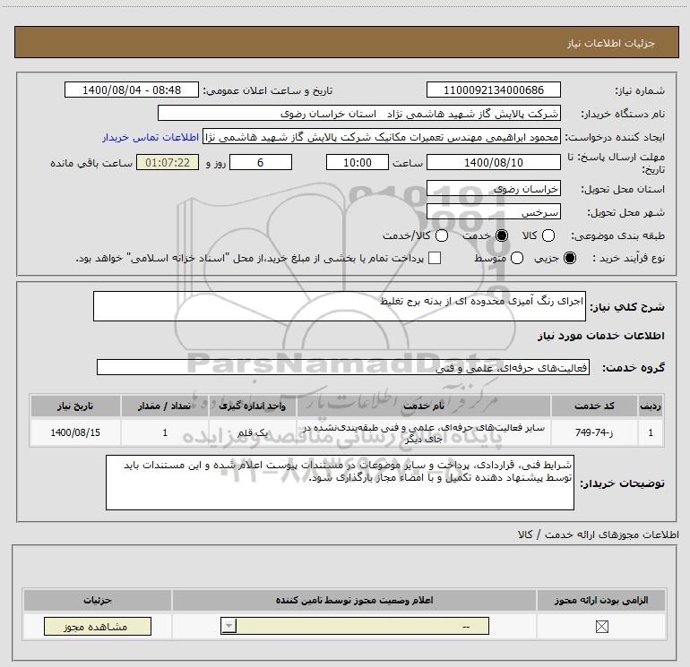 شرح کلی نیاز: اجرای رنگ آمیزی محدوده ای از بدنه برج تغلیظ