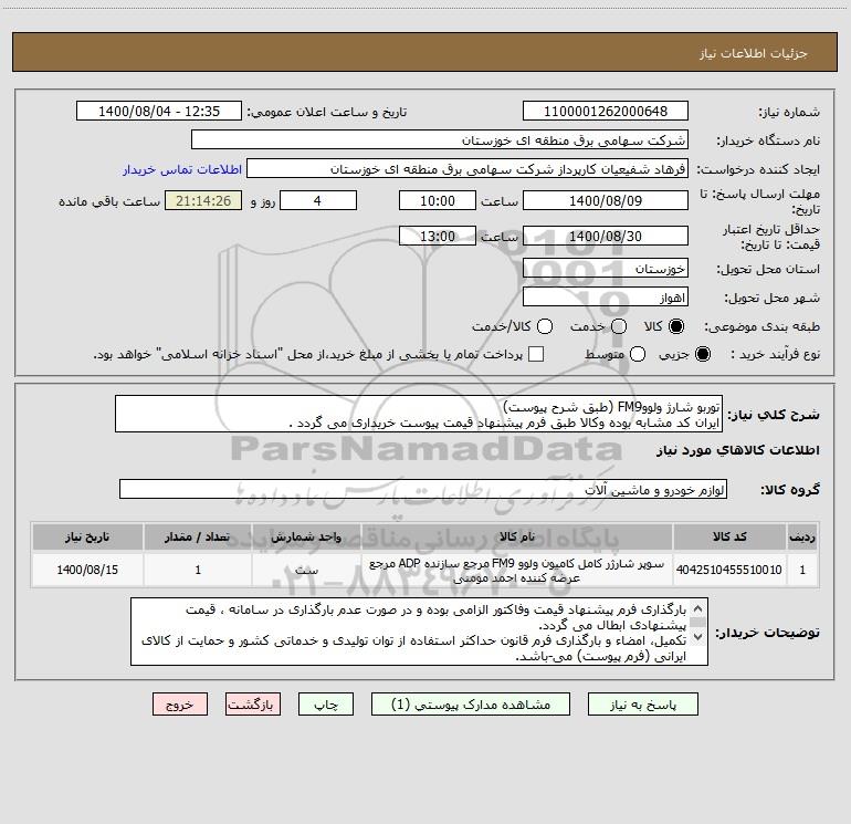 شرح کلی نیاز: توربو شارژ ولووFM9 (طبق شرح پیوست)