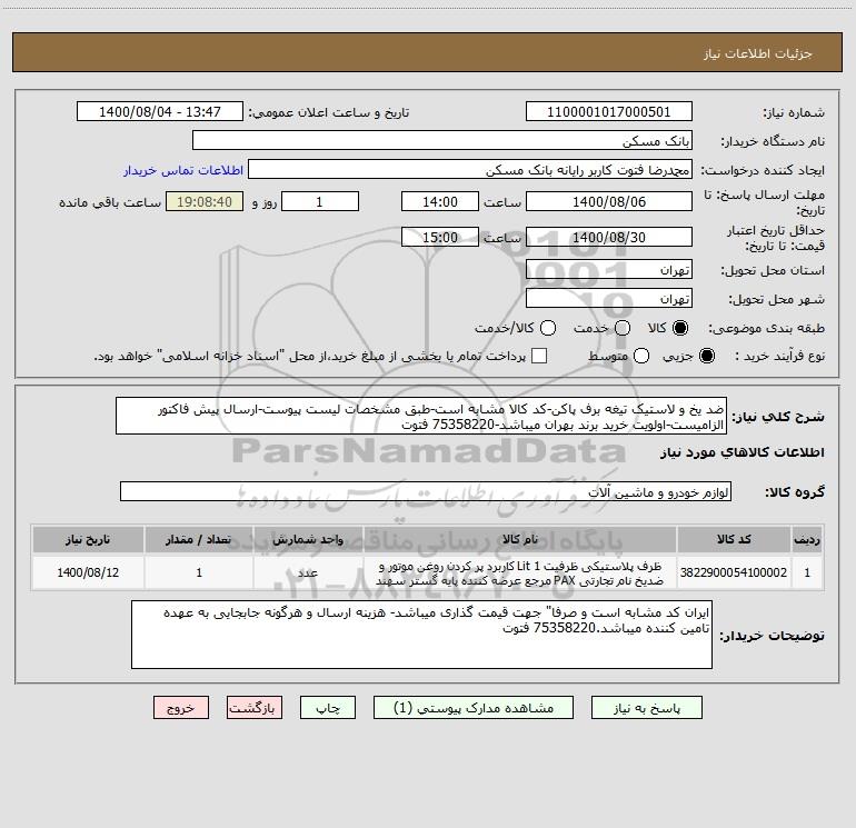 شرح کلی نیاز: ضد یخ و لاستیک تیغه برف پاکن-کد کالا مشابه است-طبق مشخصات لیست پیوست-ارسال پیش فاکتور الزامیست-اولویت خرید برند بهران میباشد-75358220 فتوت
