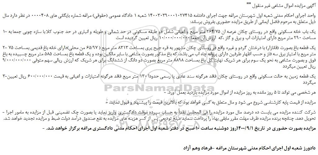 "آگهی مزایده اموال مشاعی غیر منقول "