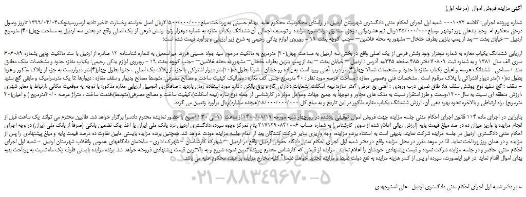 شعبه صادر کننده:شعبه اول اجرای احکام مدنی دادگستری شهرستان اردبیل/قدیم