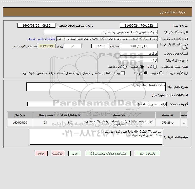نام دستگاه خریدار:شرکت پالایش نفت امام خمینی ره شازند