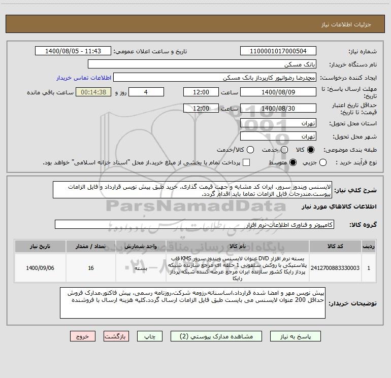استعلام لایسنس ویندوز سرور. ایران کد مشابه و جهت قیمت گذاری. خرید طبق پیش نویس قرارداد و فایل الزامات پیوست.مندرجات فایل الزامات تماما باید اقدام گردد., استعلام لایسنس ویندوز سرور. ایران کد مشابه و جهت قیمت گذاری. خرید طبق پیش نویس قرارداد و فایل الزامات پیوست.مندرجات فایل الزامات تماما باید اقدام گردد.