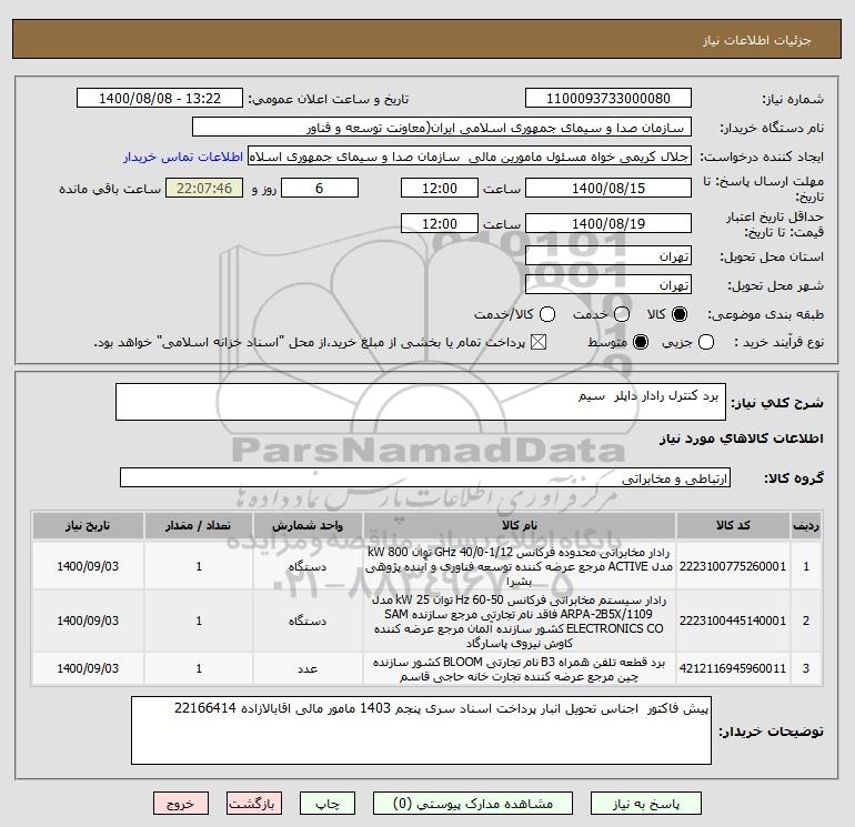 استعلام برد کنترل رادار داپلر سیم, استعلام برد کنترل رادار داپلر سیم