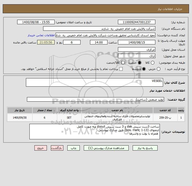 نام دستگاه خریدار:شرکت پالایش نفت امام خمینی ره شازند