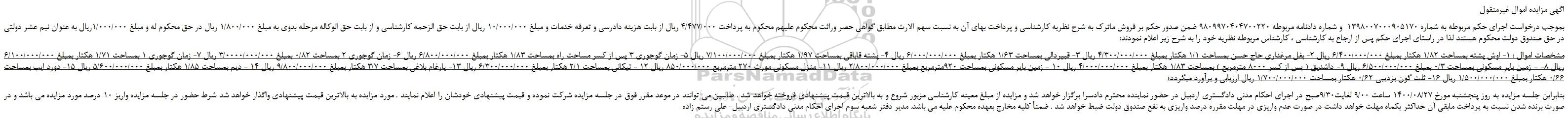 اگهی مزایده اموال غیرمنقول