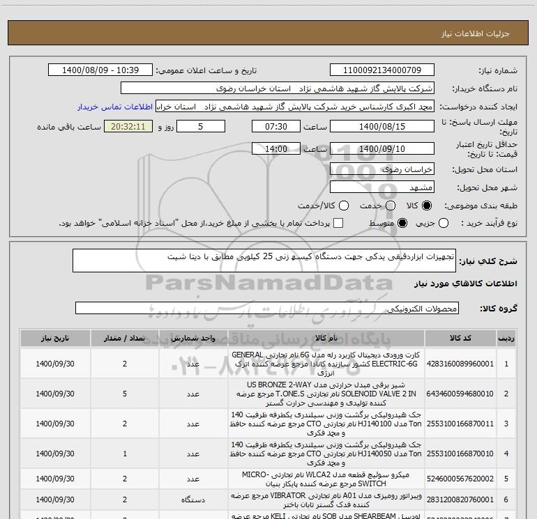 نام دستگاه خریدار:شرکت پالایش گاز شهید هاشمی نژاد استان خراسان رضوی