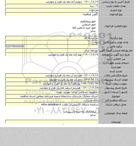 اجرای عملیات بازسازی ساختمان شعبه میرداماد مطابق اسناد مناقصه