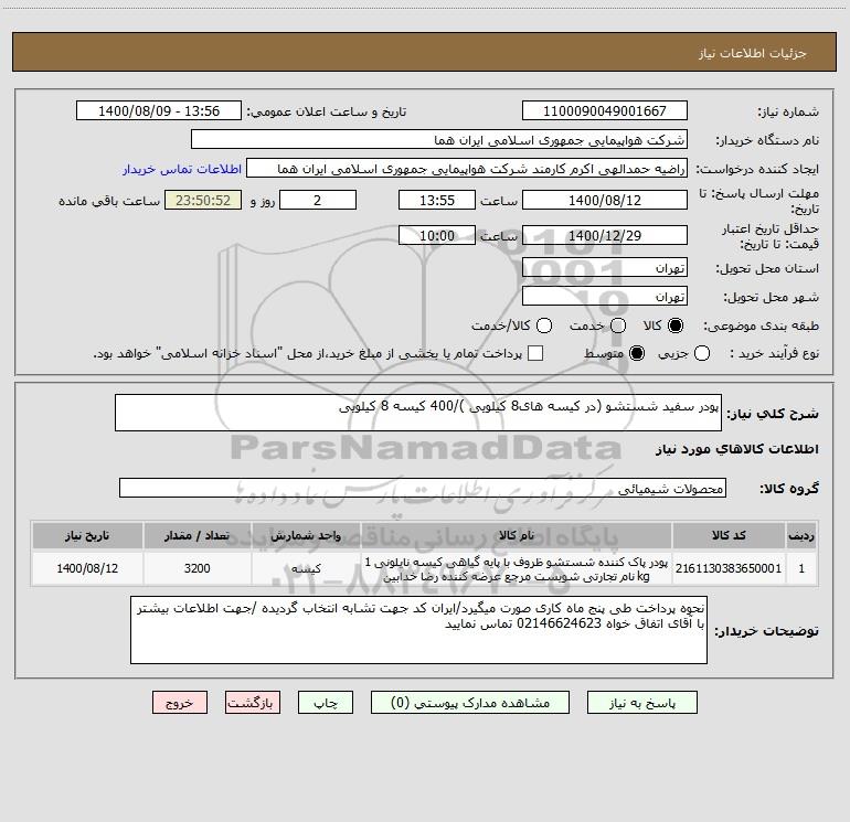 استعلام پودر سفید شستشو (در کیسه های8 کیلویی )/400 کیسه 8 کیلویی , استعلام پودر سفید شستشو (در کیسه های8 کیلویی )/400 کیسه 8 کیلویی