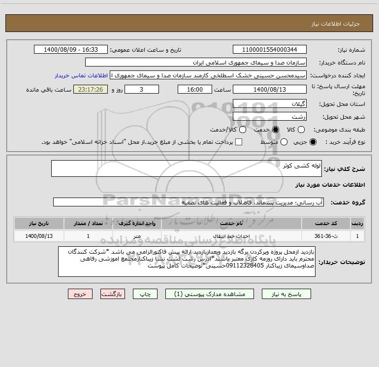 نام دستگاه خریدار:سازمان صدا و سیمای جمهوری اسلامی ایران