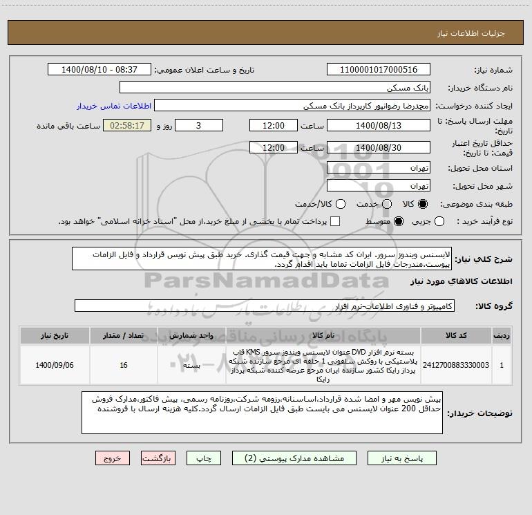 شرح کلی نیاز: لایسنس ویندوز سرور. ایران کد مشابه و جهت قیمت گذاری. خرید طبق پیش نویس قرارداد و فایل الزامات پیوست.مندرجات فایل الزامات تماما باید اقدام گردد.