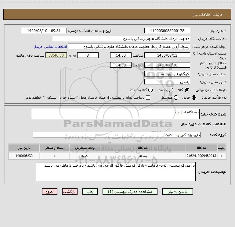 نام دستگاه خریدار:معاونت درمان دانشگاه علوم پزشکی یاسوج