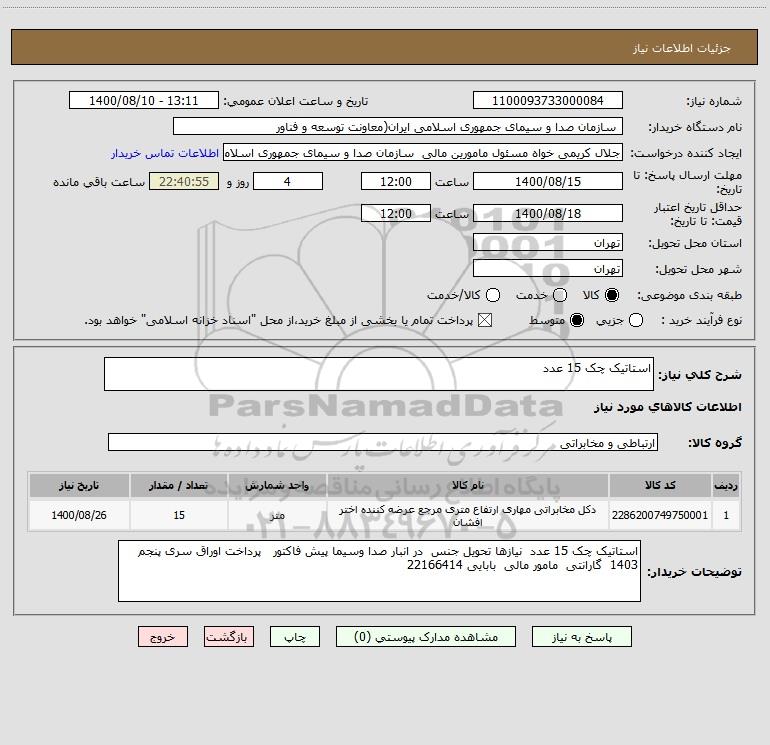 توضیحات خریدار:استاتیک چک 15 عدد نیازها تحویل جنس در انبار صدا وسیما پیش فاکتور پرداخت اوراق سری پنجم 1403 گارانتی مامور مالی بابایی 22166414