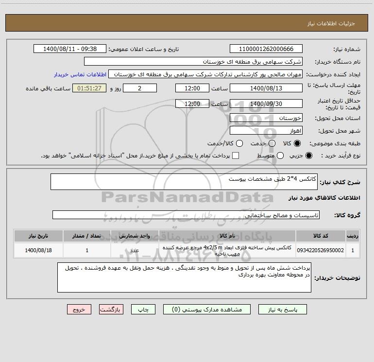 شرح کلی نیاز: کانکس 4*2 طبق مشخصات پیوست