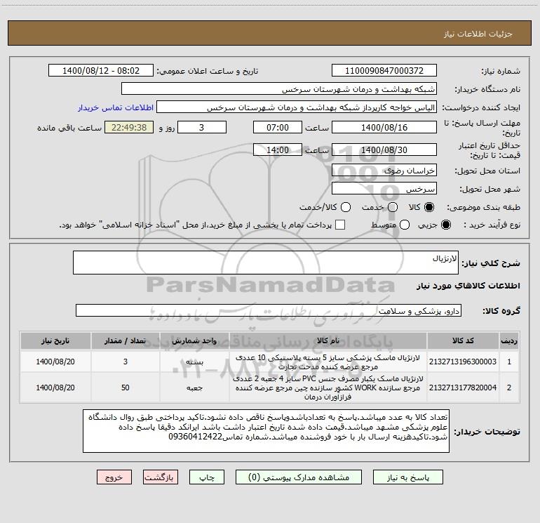 نام دستگاه خریدار:شبکه بهداشت و درمان شهرستان سرخس