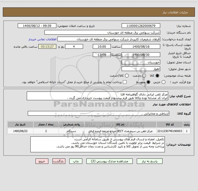 نام دستگاه خریدار:شرکت سهامی برق منطقه ای خوزستان