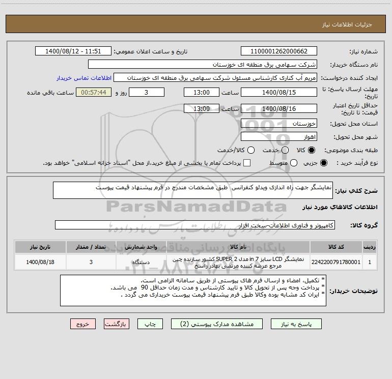 نام دستگاه خریدار:شرکت سهامی برق منطقه ای خوزستان