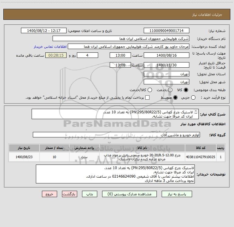 نام دستگاه خریدار:شرکت هواپیمایی جمهوری اسلامی ایران هما