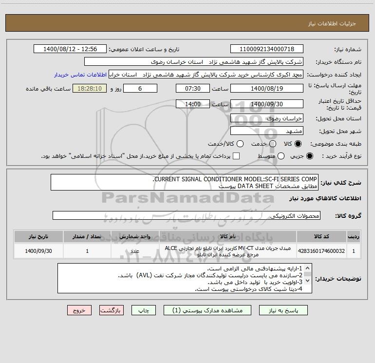 شرح کلی نیاز: CURRENT SIGNAL CONDITIONER MODEL:SC-FI SERIES COMP.