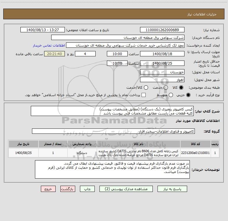 استعلام کیس کامپیوتر رومیزی (یک دستگاه) (مطابق مشخصات پیوست) کلیه قطعات می بایست مطابق مشخصات فنی پیوست باشد, استعلام کیس کامپیوتر رومیزی (یک دستگاه) (مطابق مشخصات پیوست) کلیه قطعات می بایست مطابق مشخصات فنی پیوست باشد