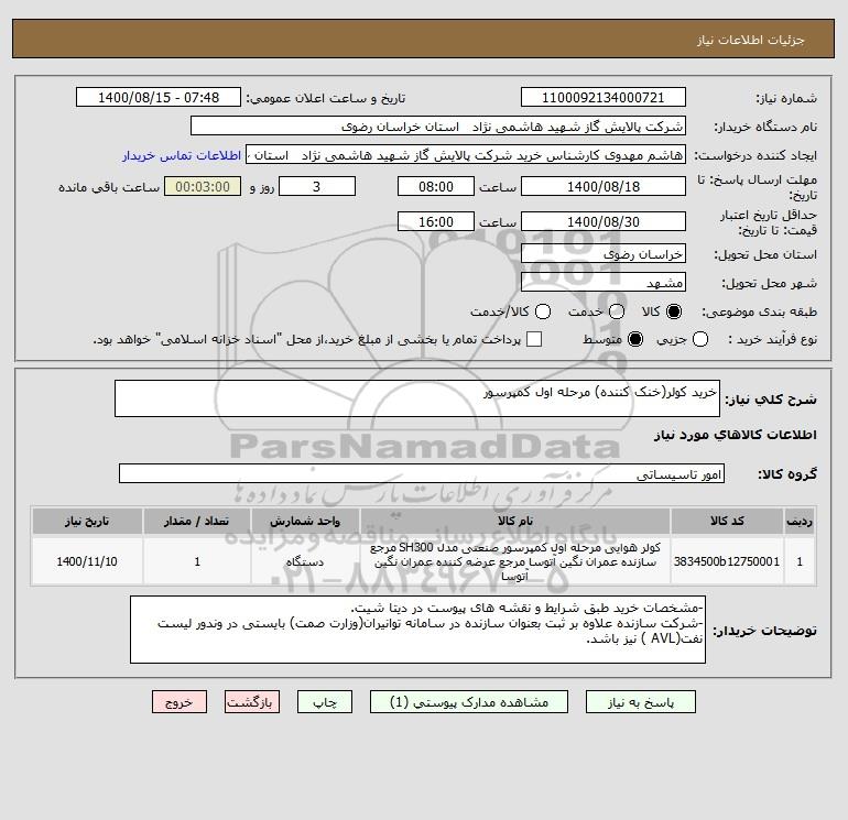 نام دستگاه خریدار:شرکت پالایش گاز شهید هاشمی نژاد استان خراسان رضوی