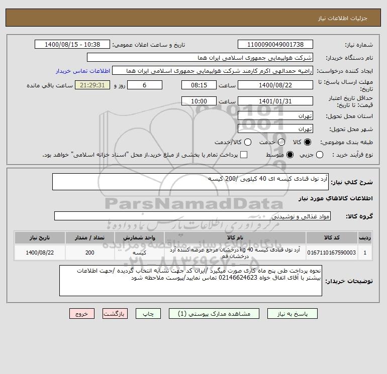 استعلام آرد نول قنادی کیسه ای 40 کیلویی /200 کیسه , استعلام آرد نول قنادی کیسه ای 40 کیلویی /200 کیسه