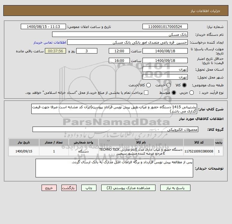 شرح کلی نیاز: پشتیبانی 1415 دستگاه حضور و غیاب طبق پیش نویس قراداد پیوست(ایران کد مشابه است صرفا جهت قیمت گذاری می باشد)