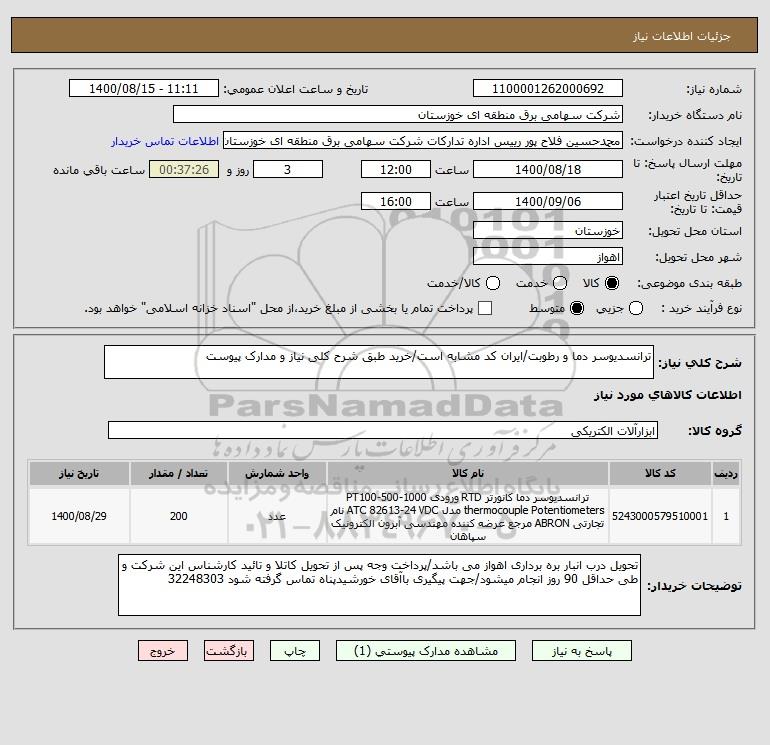 نام دستگاه خریدار:شرکت سهامی برق منطقه ای خوزستان