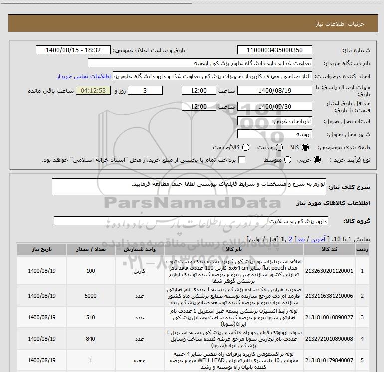 نام دستگاه خریدار:معاونت غذا و دارو دانشگاه علوم پزشکی ارومیه