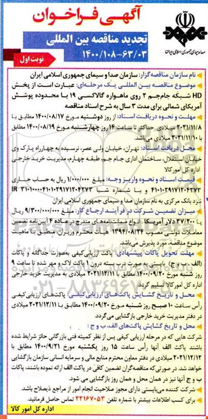 فراخوان مناقصه پخش HD شبکه جام جم 2 روی ماهواره گالاکسی ... تجدید, فراخوان مناقصه پخش HD شبکه جام جم 2 روی ماهواره گالاکسی ... تجدید
