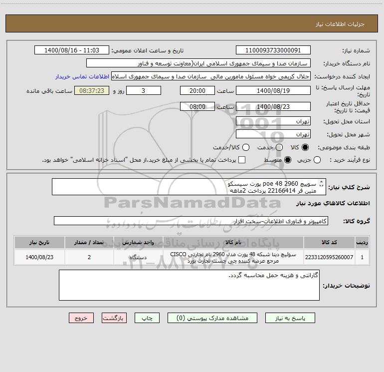 نام دستگاه خریدار: سازمان صدا و سیمای جمهوری اسلامی ایران(معاونت توسعه و فناور