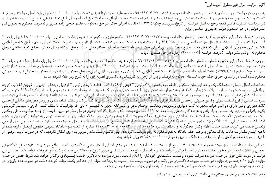 شعبه صادر کننده:شعبه سوم اجرای احکام مدنی دادگستری شهرستان اردبیل