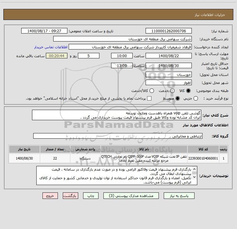 نام دستگاه خریدار:شرکت سهامی برق منطقه ای خوزستان