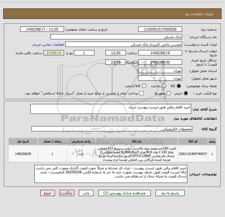استعلام خرید اقلام برقی طبق لیست پیوست شده, استعلام خرید اقلام برقی طبق لیست پیوست شده