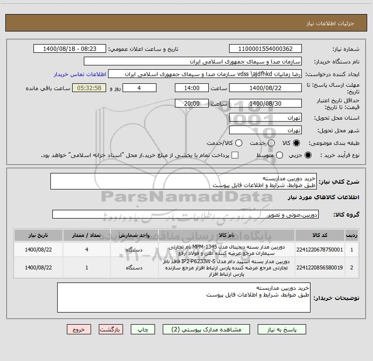 نام دستگاه خریدار:سازمان صدا و سیمای جمهوری اسلامی ایران