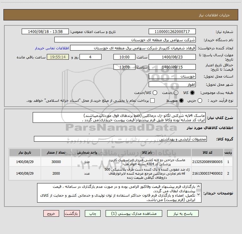 نام دستگاه خریدار:شرکت سهامی برق منطقه ای خوزستان