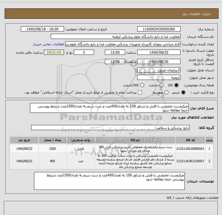 نام دستگاه خریدار:معاونت غذا و دارو دانشگاه علوم پزشکی ارومیه