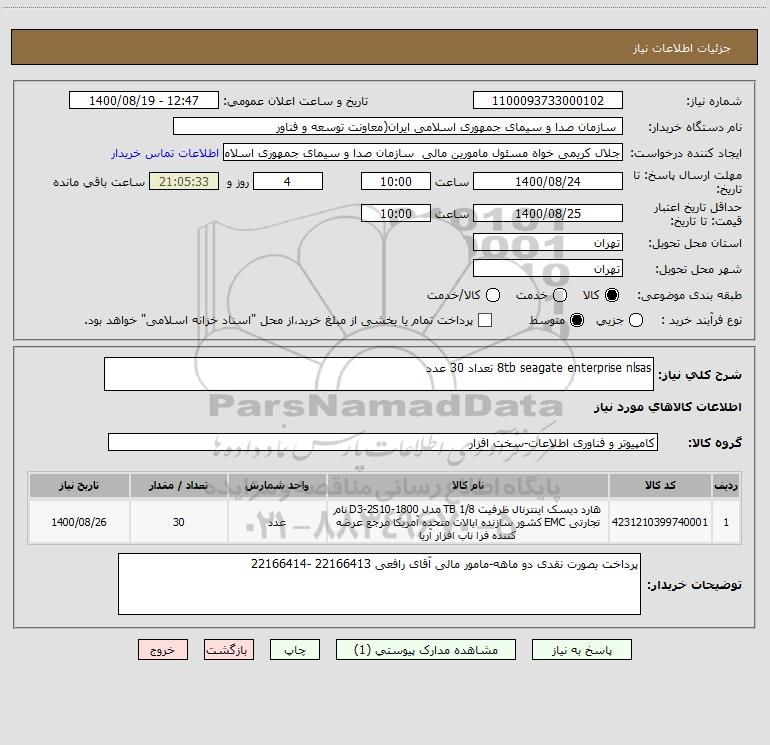 شرح کلی نیاز: 8tb seagate enterprise nlsas تعداد 30 عدد