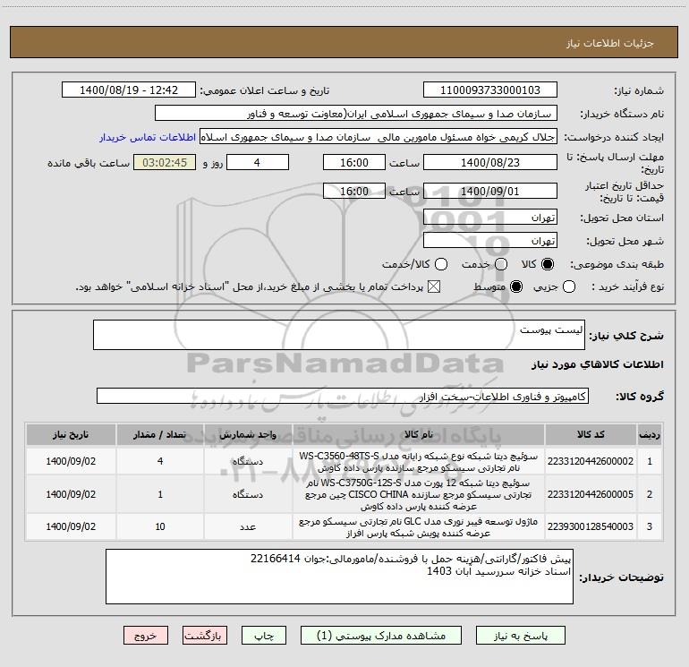نام دستگاه خریدار: سازمان صدا و سیمای جمهوری اسلامی ایران(معاونت توسعه و فناور