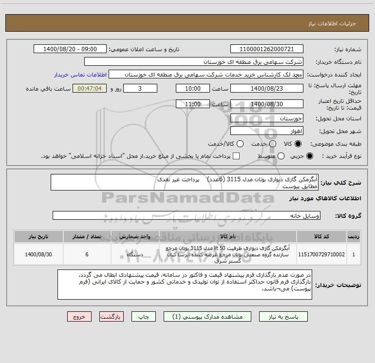 نام دستگاه خریدار:شرکت سهامی برق منطقه ای خوزستان