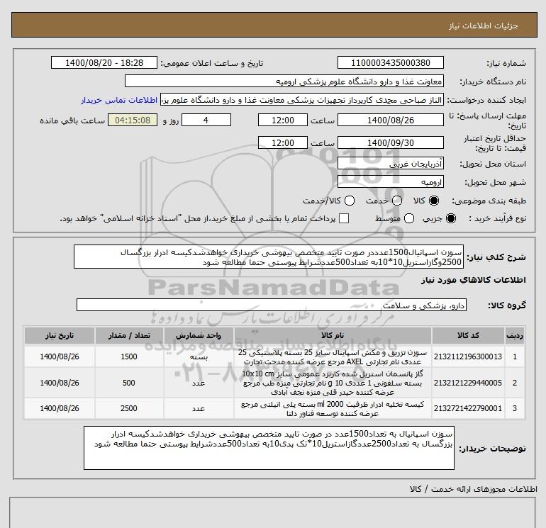 نام دستگاه خریدار:معاونت غذا و دارو دانشگاه علوم پزشکی ارومیه