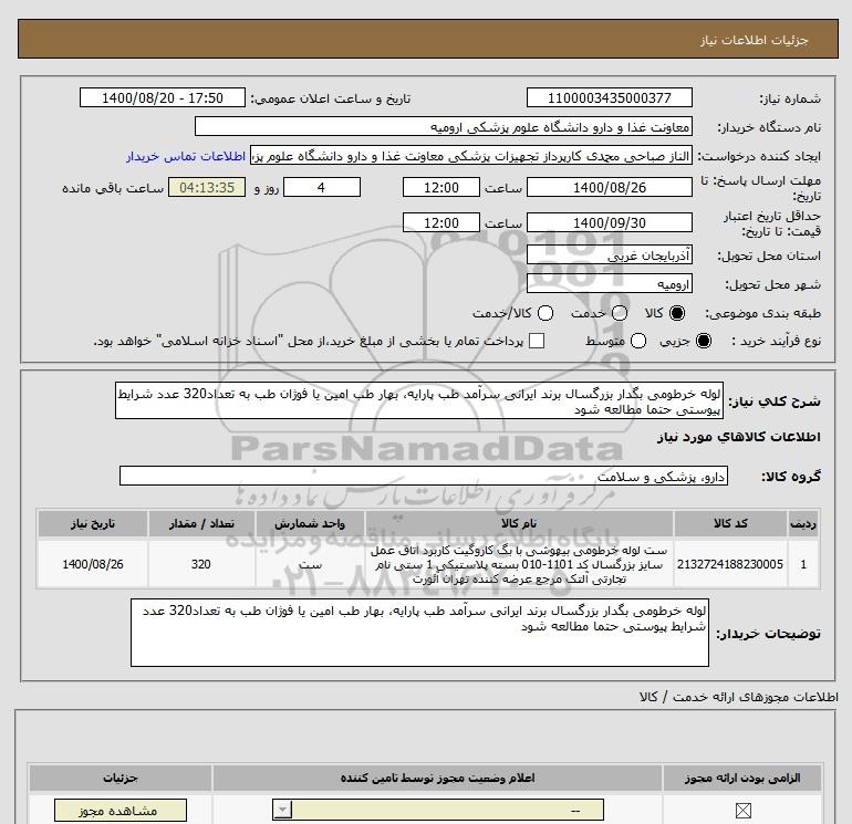 نام دستگاه خریدار:معاونت غذا و دارو دانشگاه علوم پزشکی ارومیه