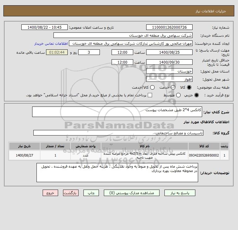 شرح کلی نیاز: کانکس 4*2 طبق مشخصات پیوست