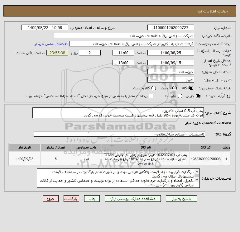 نام دستگاه خریدار:شرکت سهامی برق منطقه ای خوزستان