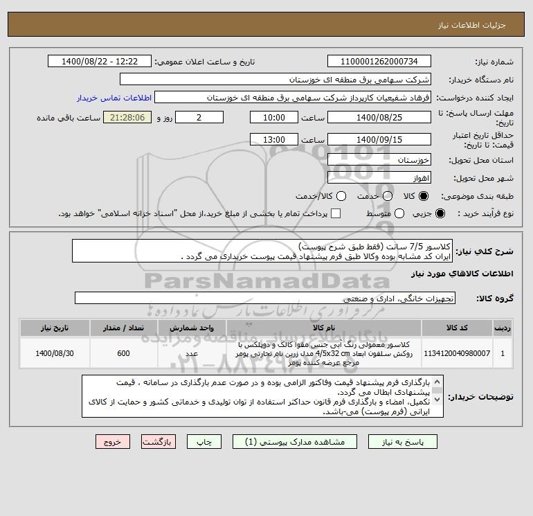 شرح کلی نیاز: کلاسور 7/5 سانت (فقط طبق شرح پیوست)