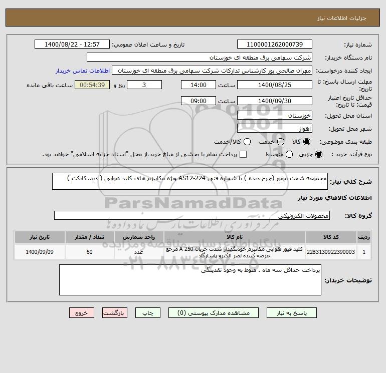 نام دستگاه خریدار:شرکت سهامی برق منطقه ای خوزستان